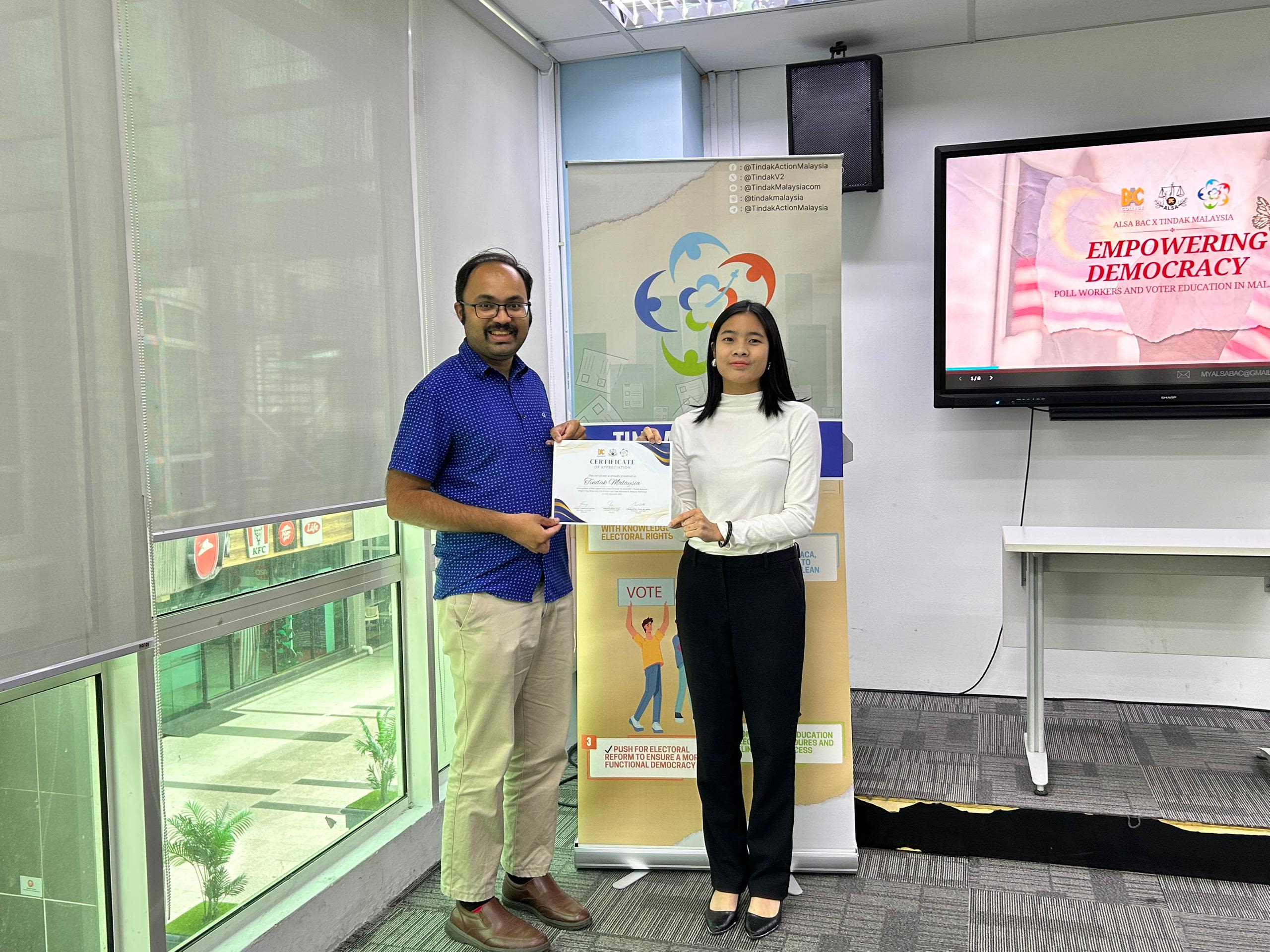 In summary, this workshop was a timely reminder that democracy is a shared responsibility. With guidance from organisations like Tindak Malaysia and support from platforms like ALSA BAC, the students were equipped not just to vote, but to lead the charge in safeguarding electoral integrity.