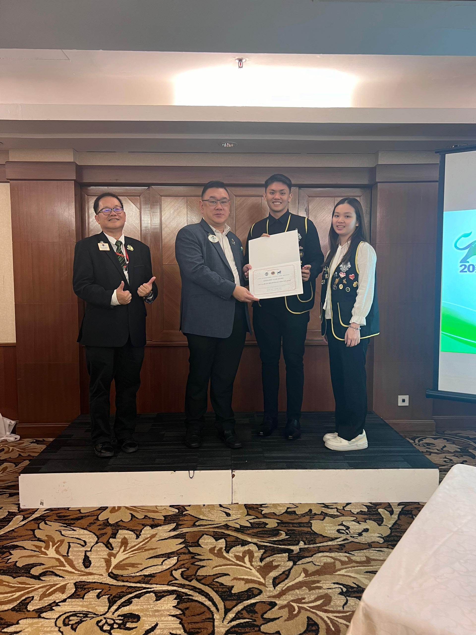 Leo Kek Hau received the Excellent President Award for his exceptional performance and outstanding contributions as President of BAC Leo Club. Leading with integrity, empathy, and inclusivity, Kek Hau ensured that all members felt valued and heard. His strategic planning and decisive actions guided the club through challenges and opportunities, steering them towards sustainable growth and success.