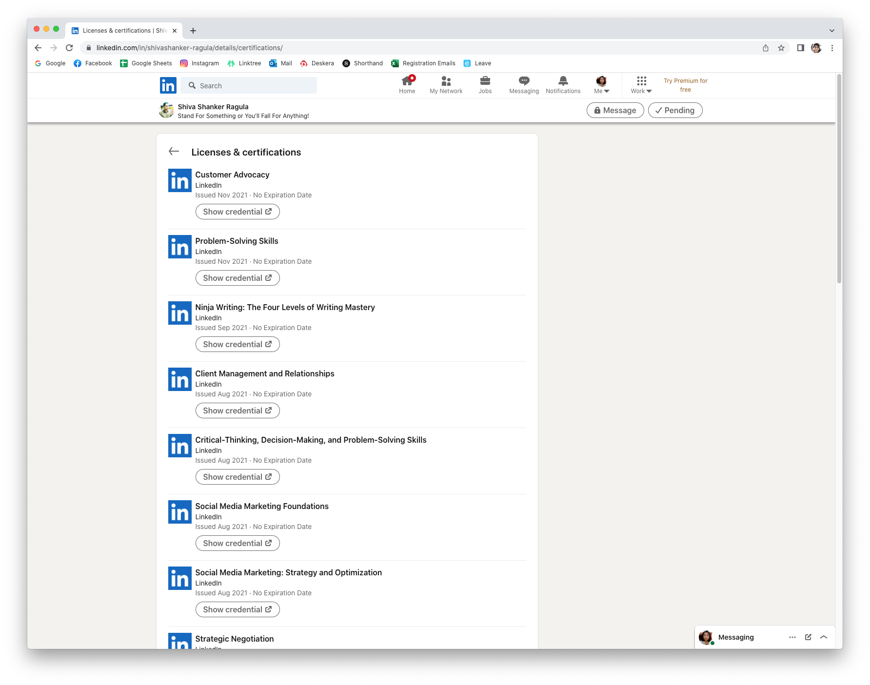 Though his application notes his benchmark at 224 certificates, Shiva explained that his own self record is nearing 300 because he even spent some time learning things from other sites like YouTube.