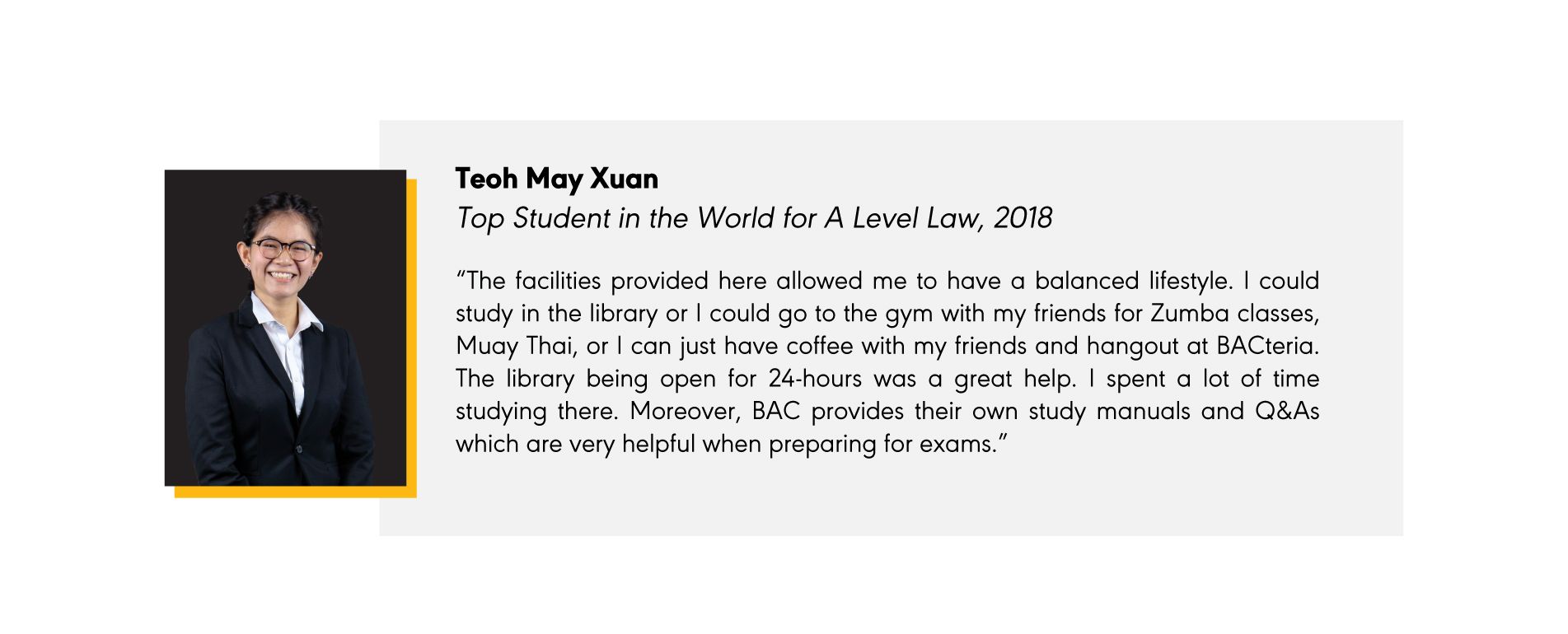 BAC has been offering this programme since 1991 and has a proven track record of producing excellent results for this programme. Our students have consistently won Cambridge Outstanding Learner Awards for Top Student in the World for the subjects of Business and Law.