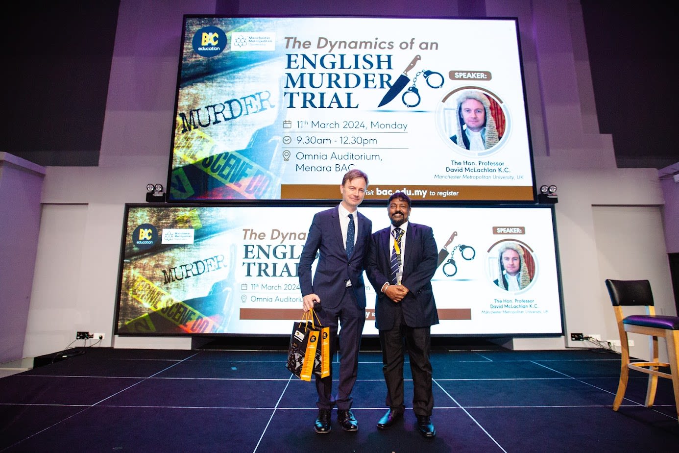 On 11th March 2024, students of Brickfields Asia College were privileged to be in the presence and listen to a lecture by Professor David McLachlan, K.C. (King's Counsel). Called to the Bar by the Honourable Society of the Inner Temple in 1996, he began his academic career at the University of Essex where he lectured at, and was solely responsible for the provision of the Law of Evidence course (1996–1997). In 1997 he commenced pupillage and thereafter tenancy on the Northern Circuit at a Chambers which specialised in criminal law.