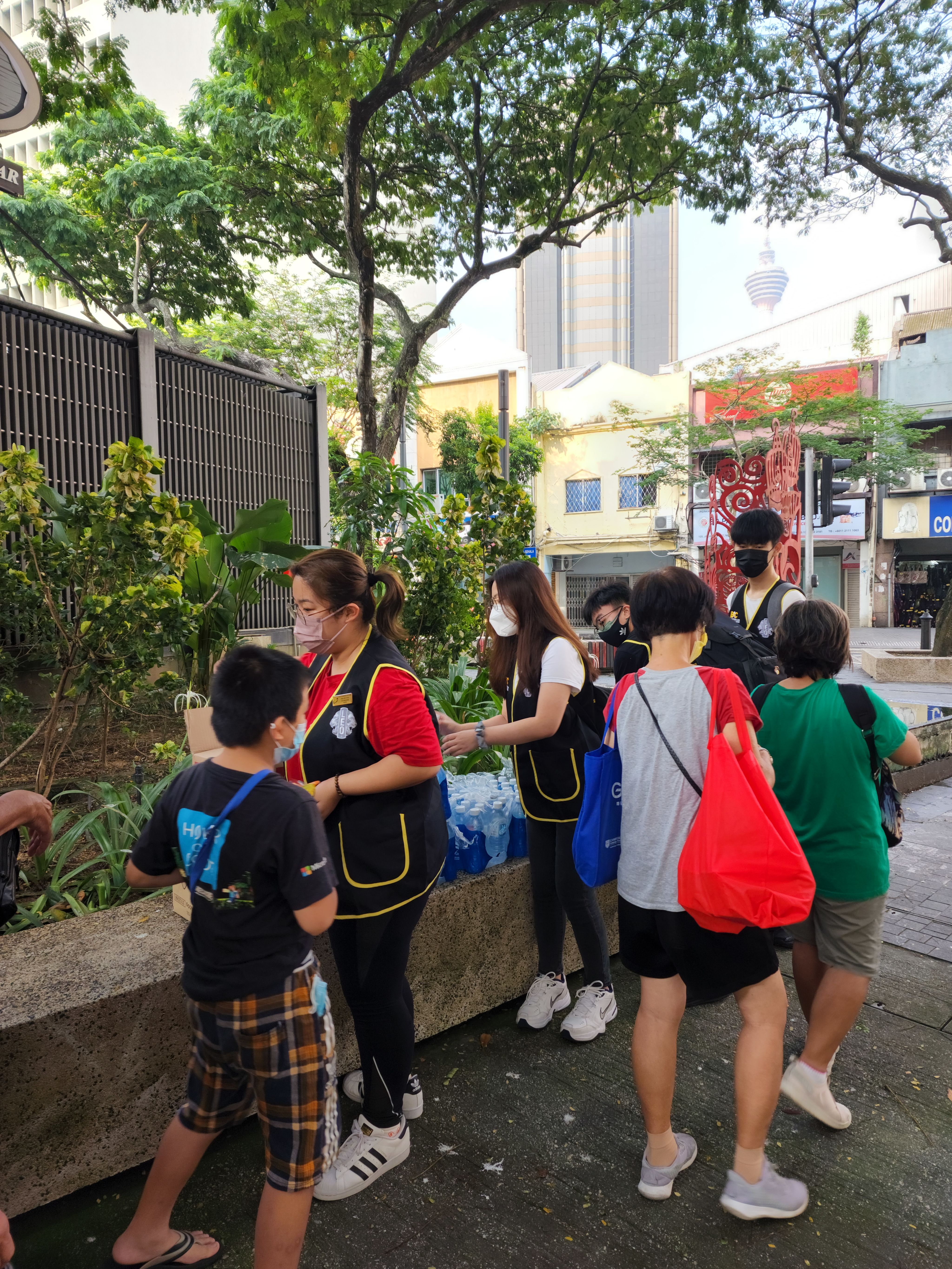 On the next day, they gathered on campus to prepare items to be distributed, and then set out for Masjid Jamek. Upon reaching Lebuh Pudu, they discovered many homeless people in the area.