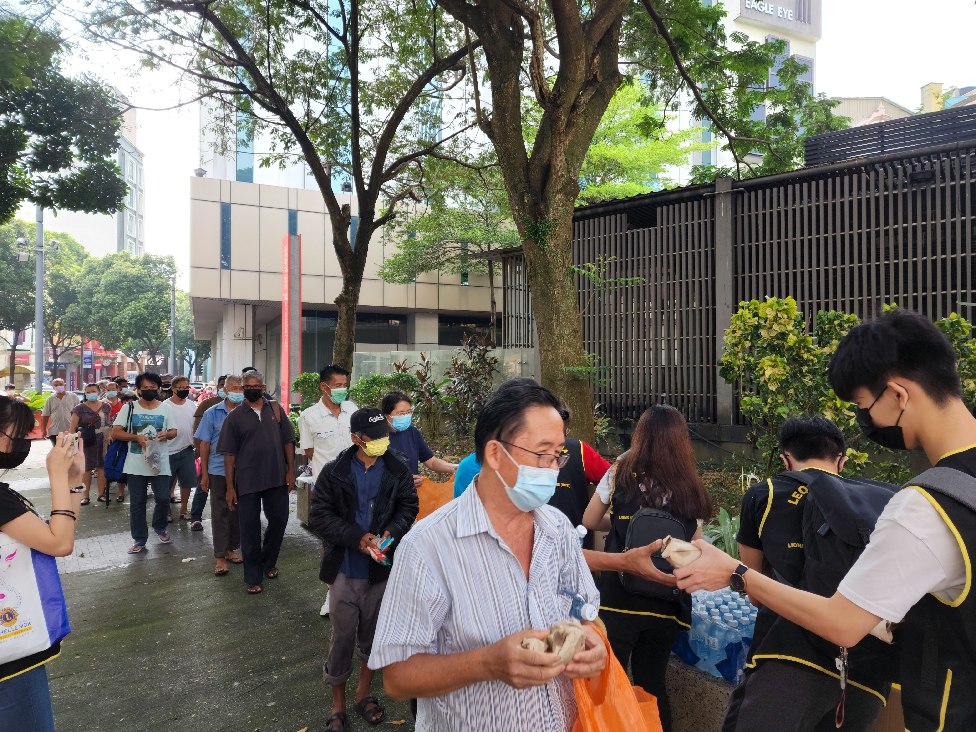 The team managed to get the homeless community to queue, and started distributing items. Each individual were given two buns, a bottle of water and a packet of nasi kerabu. They were orderly and polite, stopping to thank the team before leaving.