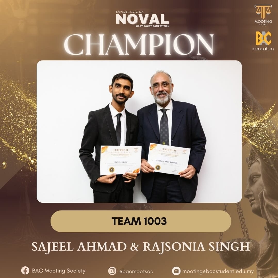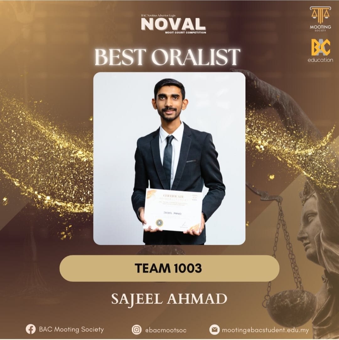 NOVAL 2025 was a full-fledged advocacy journey that guided first-time mooters from learning the basics to standing confidently before experienced judges. Held across a series of workshops and culminating in the competition on 6th and 7th December 2025, NOVAL brought together law students, practitioners, and organisers in a shared pursuit of legal excellence at BAC.