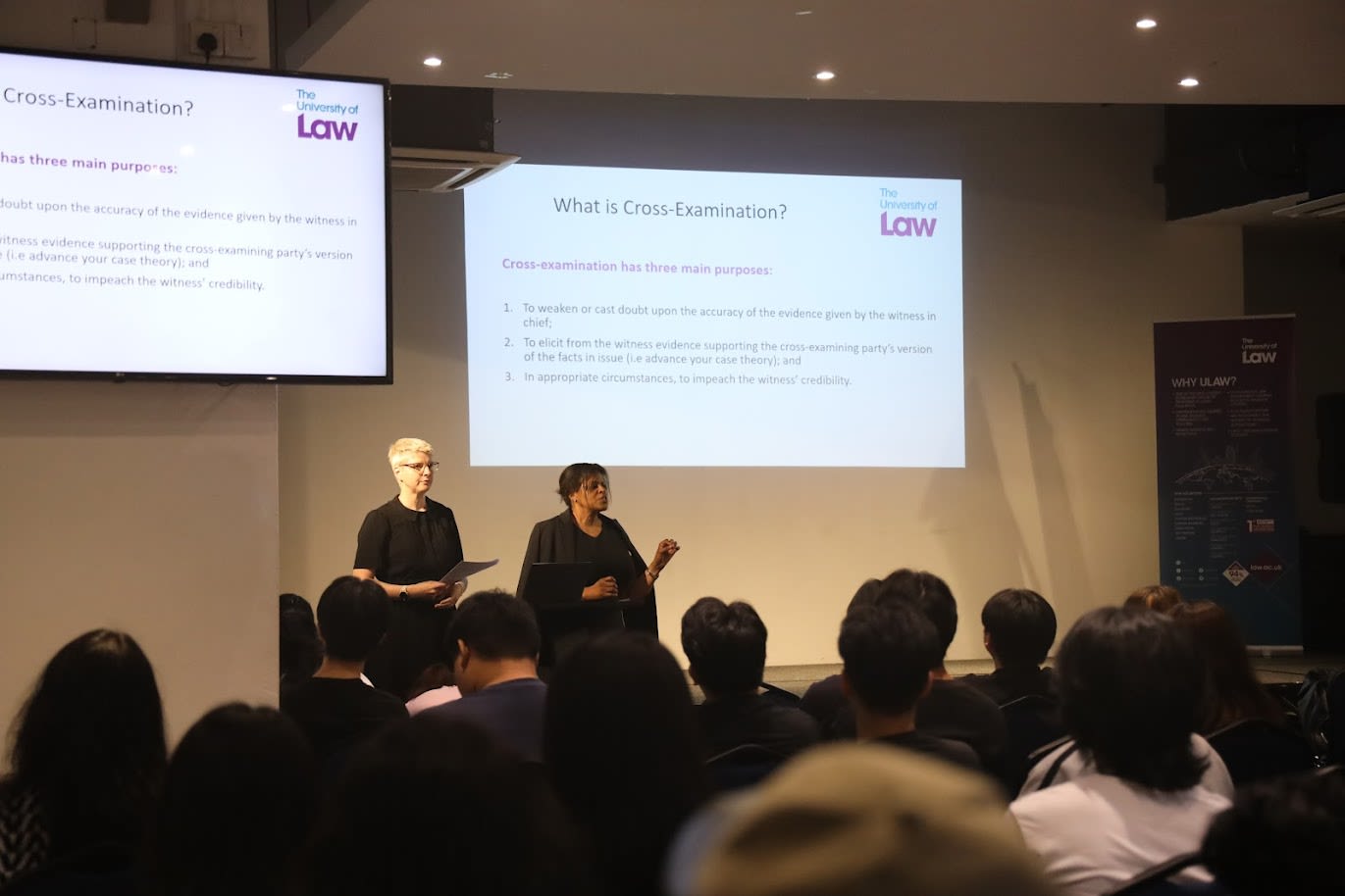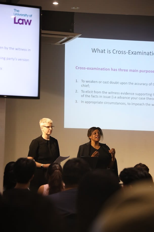 Instead of a typical law lecture, our BAC students got an exciting deep dive into the art of advocacy with The University of Law's Jacqueline Cheltenham (Programme Director, BPC) and Beverly Dawes (Deputy Programme Director, BPC).
