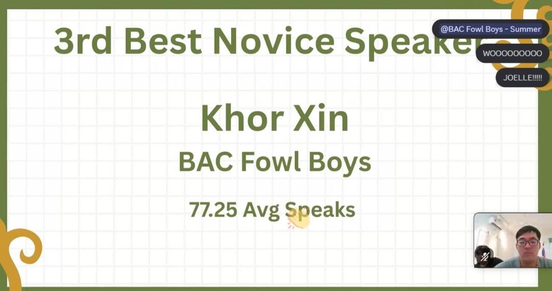 - 3rd Best Novice Speaker