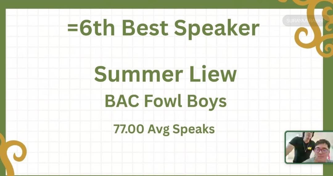 Beyond team success, several BAC debaters were recognised with individual speaker awards for their outstanding performances. These awards reflect not only technical skill, but also the ability to communicate persuasively and think critically under pressure, skills that are central to the core of competitive debating.