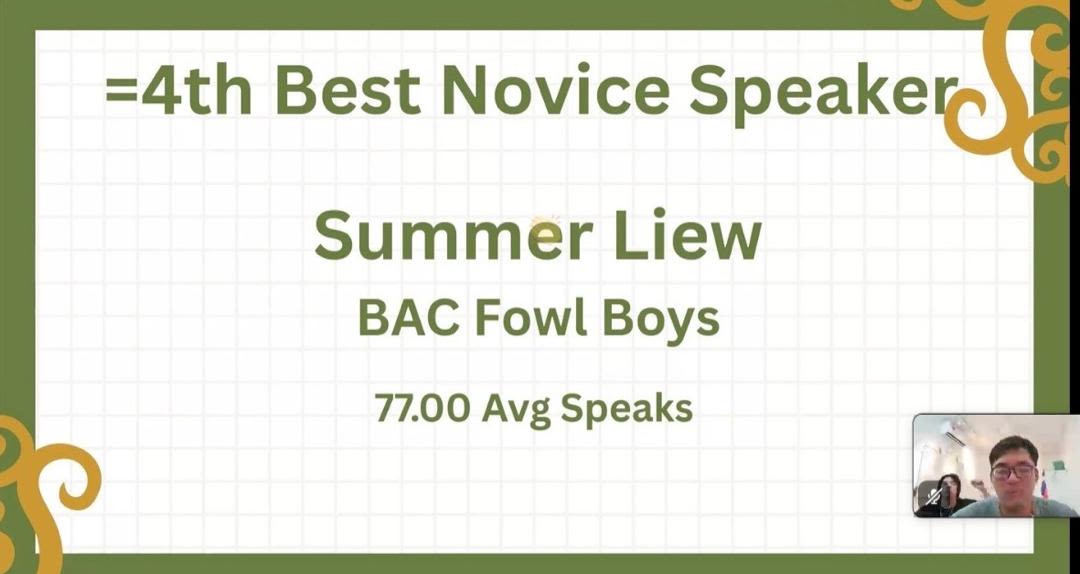 - 4th Best Novice Speaker